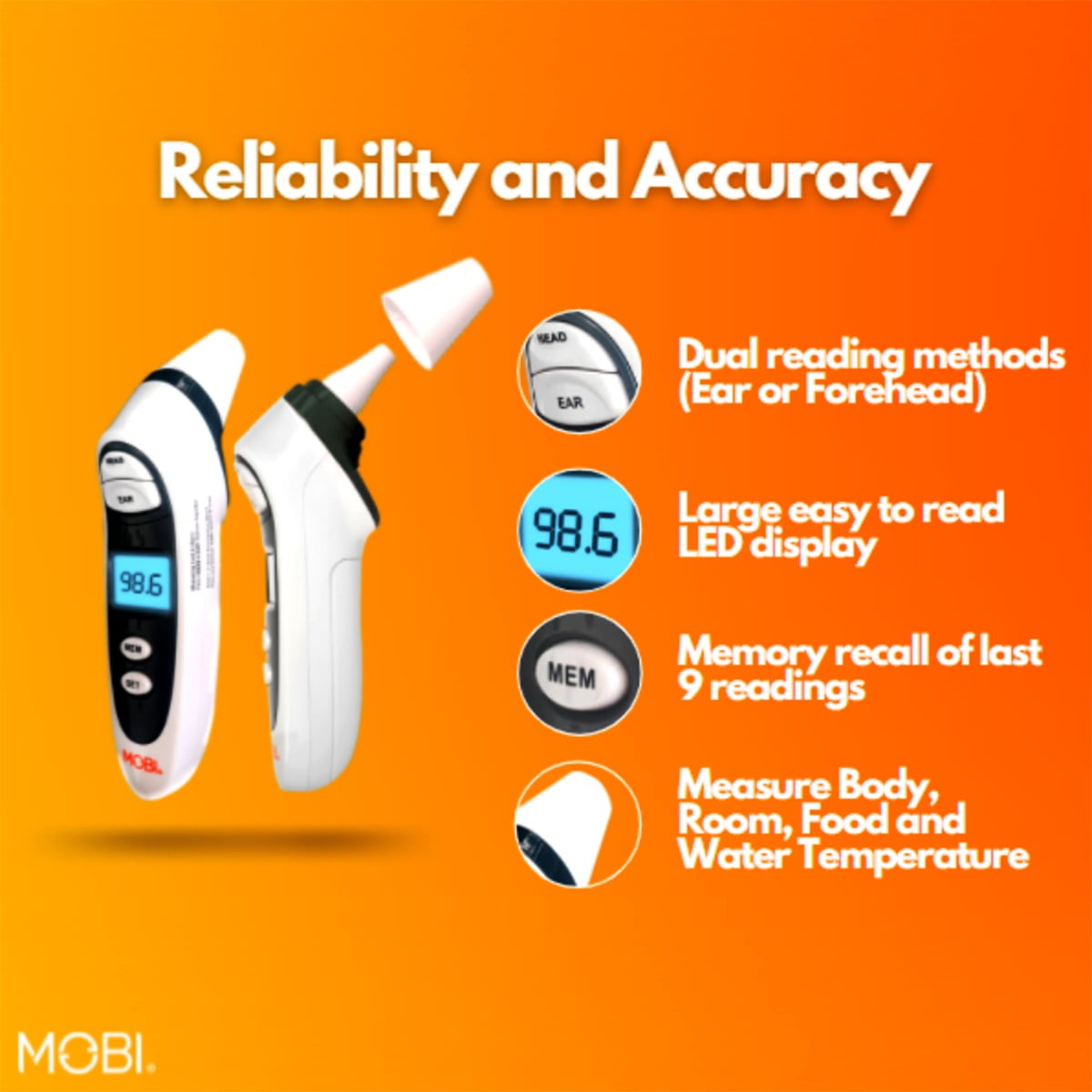 Mobi Ultra Pulse Talking Ear Forehead Digital Thermometer With Pulse Rate Diagnostic Fever Indicator And Memory Log Target